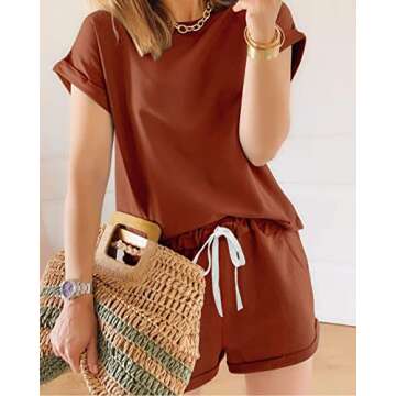 Show moreIntroducing the KIRUNDO 2021 Women’s Tie Dye Print Pajama Set, the ultimate combination of style, comfort, and functionality. This stunning two-piece outfit features a short sleeve tee and matching shorts crafted from premium soft fabric that feels luxurious against the skin. The chic tie-dye print in a warm solid-brick red hue brings a vibrant and trendy touch to your loungewear collection. Whether you're running errands or relaxing at home, this pajama set promises to keep you looking stylish while ensuring maximum comfort. Designed to fit true to size, it's perfect for lounging or a cozy night's sleep.