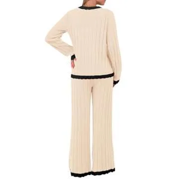 KIRUNDO Fall Sweater Sets Women 2 Piece Clothing Set Ribbed Knit Long Sleeve Soft Pullover Wide Leg Pants Lounge Outfits(Beige, Large)