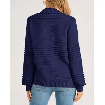 Show moreEmbrace the cozy vibes of fall and winter with the KIRUNDO Knit Sweater for Women, a perfect blend of style and comfort. This trendy long sleeve sweater features a chic striped design, crafted from a soft, chunky knit fabric that feels fabulous against your skin, offering warmth during the chilly months. The classic round neck enhances your natural silhouette, while the cute crochet hollow-out details add a stylish twist to a timeless piece. The rich navy color allows for versatile styling, making it a must-have addition to your wardrobe.