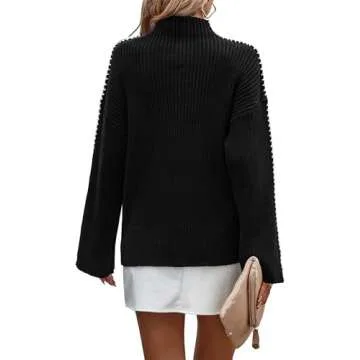 KIRUNDO Women's 2024 Fall Mock Neck Long Sleeve Ribbed Knit Contrast Stitching Oversized Chunky Sweater Pullover Top Black