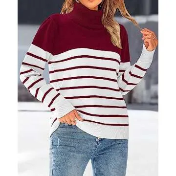 With a slightly oversized turtleneck, you can adjust the look to suit your style, whether you prefer it relaxed or more fitted, depending on your mood or the occasion. The fabric's softness is complemented by an attractive design that transitions seamlessly from casual outings to chic gatherings. Additionally, the stunning maroon stripe option adds a unique touch, providing variety for those who love to express their individuality through fashion.