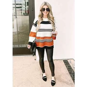KIRUNDO Women's 2025 Fall Winter Striped Color Block Short Sweater Long Sleeve Crew Neck Casual Loose Knit Pullover Tops(X-Large, 1977-Orange)