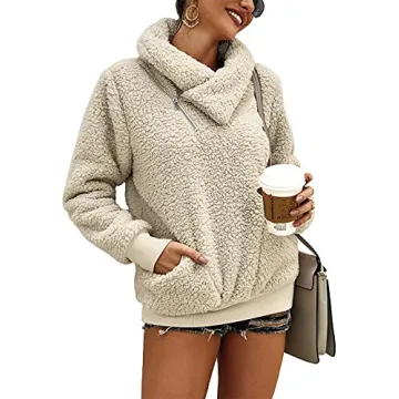 Show more Introducing the ultimate cozy companion for the fall and winter seasons - the Sherpa Pullover Sweatshirt! This stylish yet functional pullover by a renowned brand is designed to wrap you in warmth and comfort. Crafted from ultra-soft teddy bear fleece, this sweatshirt features a high neckline with a convenient zipper that not only adds an element of flair but also provides protection against chilly winds. Its oversized fit ensures that you can layer it over your favorite outfits without feeling restricted, making it perfect for both casual outings and relaxed evenings at home.