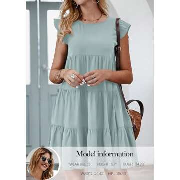 Show moreKIRUNDO Women's Dresses 2025 Spring Summer Casual Sleeveless Ruffle Round Neck Solid Loose Short Flowy Tiered Mini Babydoll Dress is your go-to item for effortlessly chic style this season! This beautifully crafted dress is designed not just to meet the fashion demand but also to cater to the comfort needs of modern women. Featuring a playful tiered design with ruffled hems, it adds an airy and youthful vibe, perfect for those warm summer days. Available in a serene Grey Green shade, the dress is made from lightweight, breathable fabric that feels luxuriously soft against your skin. Forget about zippers and buttons; you can simply pull it over your head for an instant look that is both stylish and convenient!