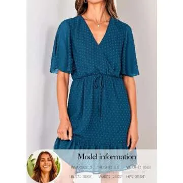 Show more Discover the ultimate blend of style and comfort with this exquisite Flutter Short Sleeve Wrap V Neck Dress. Designed for the modern woman, this dress features a mini length that flatters all body types while providing a relaxed, loose fit. Crafted from lightweight and skin-friendly chiffon, it drapes beautifully, ensuring you stay cool during the warmer seasons.