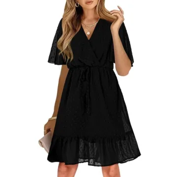 Show moreIntroducing the KIRUNDO Women's Summer Dresses 2025 – your go-to casual wear for the upcoming warm seasons! This flutter short sleeve wrap v-neck dress is designed with unparalleled style and comfort in mind, expertly crafted from skin-friendly chiffon fabric. Light as a feather, this dress drapes effortlessly over your figure, making it a perfect choice for those hot summer days. With its delightful mini length and charming ruffle hem, this dress radiates playfulness while keeping you effortlessly chic.