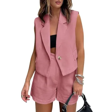 Show moreIntroducing the KIRUNDO Women's Vest Blazer and Shorts Set, the ultimate ensemble for the modern woman seeking elegance and versatility this summer. This chic two-piece outfit features a beautifully tailored sleeveless crop vest blazer paired with high-waisted shorts, designed to keep you stylish and comfortable during the warmer months. With thoughtful detailing such as faux pocket flaps and an elegant collar, this outfit effortlessly transitions from casual day events to more sophisticated evening outings, making it a staple in every woman's wardrobe.