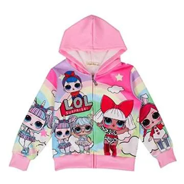 Kirzdclo Girls Hoodie Zip Sweatshirt Children Coat Cartoon Jacket Outwear Doll Surprise Pink 5-6 Years