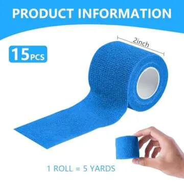 Show moreIntroducing the KISEER 15 Pack 2 Inch x 5 Yards Blue Self Adhesive Bandage, the ultimate solution for flexible support and protection for injuries. Crafted from high-quality, porous non-woven material, these cohesive bandage wraps ensure your skin can breathe while providing reliable support. Each roll is expertly designed to be soft and safe, making it suitable for both humans and pets.