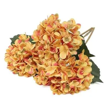 Show moreElevate your decor with the stunning Kisflower Burnt Orange Silk Hydrangea, a set of six exquisite faux hydrangea flowers designed to bring a touch of elegance to any space. Crafted meticulously from high-quality silk, these artificial flowers offer the beauty of real blooms without the hassle of upkeep or wilting. Each bloom features a vibrant burnt orange hue that perfectly captures the essence of fall, making it an ideal choice for seasonal decorations. The sturdy plastic stems, infused with steel wire, allow for easy bending, enabling you to adjust the height to suit your arrangement needs.