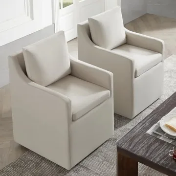 Show moreIntroducing the KISLOT Upholstered Dining Chair with Casters, your new favorite piece of furniture that brings together style, comfort, and adaptability. Crafted with a chic flax beige finish, this chair enhances the aesthetic of any dining room, living space, or home office. A unique blend of a luxurious cotton mix provides a soft and inviting touch while ensuring durability. With its elegant design, this chair not only serves as perfect dining seating but also transitions beautifully into a stylish desk chair or cozy reading spot. You will love the harmonious balance of sophistication and functionality.