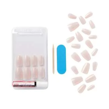 KISS Classy French Nail Manicure Kit with Gel Finish,Medium, Coffin Shaped, Includes Pink Nail Glue (Net Wt. 2 g / 0.07oz.), Mini Nail File,Manicure Stick,and 28 Fake Nails,Cozy Meets Cute', 28 Count