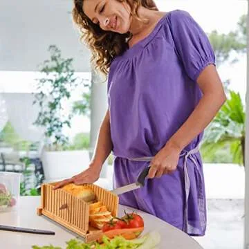 Kiss Core Premium Bamboo Bread Slicer for Homemade Bread, Crumb Catcher, Foldable and Compact Loaf Cutter 3 Size Slicing Guide