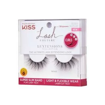 KISS Lash Couture LuXtensions Collection False Eyelashes, Flat Lash Technology, Super Slim Lash Band, Real Lash Extension Fibers, Reusable, Contact Lens Friendly Strip Lashes, Style 'Velvet', 1 Pair