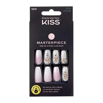 Show more Elevate your manicure game with the KISS Masterpiece One-Of-A-Kind Luxe Mani, an exquisite choice for those who desire a salon-quality look without the salon visit. This premium set features an impressive array of 43 pieces, including 30 meticulously crafted acrylic false nails and 12 accent nails, all designed to bring an air of sophistication to your fingertips. Whether you’re drawn to the enchanting style of roses or the luxurious touch of gold, this collection is tailored to suit any occasion, allowing you to effortlessly switch up your look in minutes.