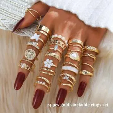 KISS WIFE Gold Knuckle Rings Set for Women, Dainty Simple Trendy Cute Stackable Finger Rings Pack, Perfect for Stacking Layering on Thumb and Knuckle, Mixed Size, Jewelry Gift (Cute)