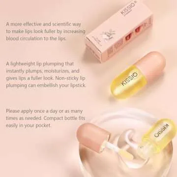 KISSIO Lip Plumper,Natural Lip Plumper for Day Use,Lip Plumping Gloss Make Lips Fuller and Moisturizing 5.5ml,Lip Mask,Hydrating & Reduce Fine Lines,Beautiful Fuller