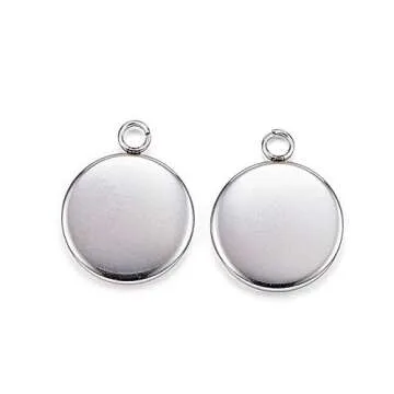 Show more KISSITTY 1000Pcs Stainless Steel Blank Bezel Cameo Flat Round Tray Pendant Cabochon Settings 10mm for DIY Photo Charm Jewelry Craft Making offers an incredible selection of 1000 durable and versatile bezel trays, designed for the creative enthusiast. Each tray measures approximately 12mm wide, 15mm long, and 2mm thick, making them an ideal match for 10mm round cabochons. With a hole of 2mm, these settings allow for easy attachment to various jewelry designs and craft projects. Whether you're creating unique pendants, cameos, or custom photo frames, these trays provide a stunning yet sturdy base for your personal touches. Made from high-quality surgical stainless steel, the trays feature an attractive muted grey finish that perfectly complements different materials, ensuring your creations look professional and stylish.