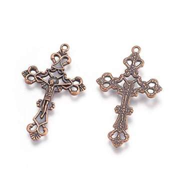 KISSITTY 50pcs Tibetian Red Copper Crucifix Cross Pendant Religious Cross Charms for Necklace Bracelets Earring Making 43.5x26x3mm