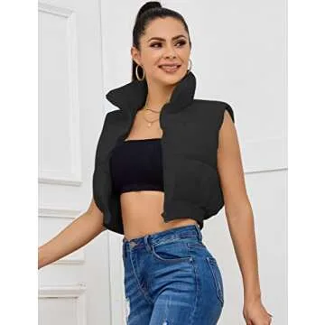 Kissonic Women's Winter Cropped Vest Lightweight Sleeveless Warm Puffer Vest Padded Gilet Outwear(Black-M)