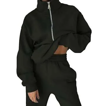 Kissonic Womens Two Piece Outfits Tracksuit Sets Half Zipper Fleece Joggers 2 Piece Long Sleeve Sweatshirts Jogger Pant(Black-M)