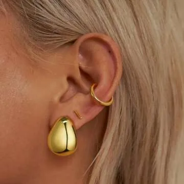 KissYan Gold Earrings for Women, 14K Gold Plated Chunky Dome Hoops Lightweight Teardrop Earrings Irregular Shape Hollow Open Hoops Fashion Jewelry(Style1-G)