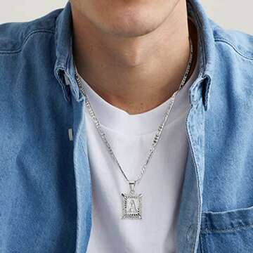 Show more Introducing the **KissYan Initial Letter Pendant Necklace**, a stunning piece of jewelry that combines elegance with personal significance. This exquisite necklace features a beautifully crafted initial pendant, measuring 2.3 cm by 1.8 cm (1.26" x 0.64"), designed to be a unique expression of individuality. Available in white gold plating, the monogram pendant is versatile enough to suit anyone's style, making it the perfect addition to your accessory collection. With a durable 50 cm (20") figaro chain made of stainless steel, you can wear this necklace comfortably all day long.