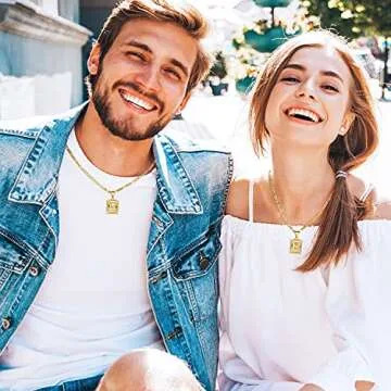 KissYan Initial Letter Pendant Necklace for Men Women, 14K Gold Plated Square Capital Monogram Necklace Alphabets from A-Z Figaro Chain Jewelry (Gold, K)