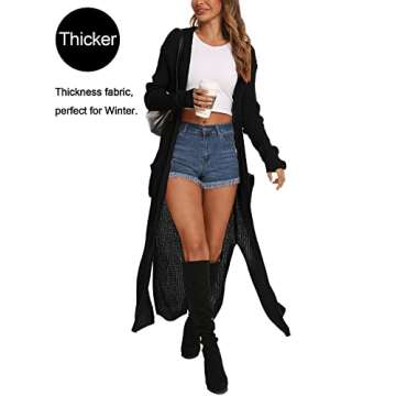 Show moreEmbrace elegance and warmth with the Kistore Women’s Sweaters Winter Solid Long Sleeve Open Front Thick Knit Long Slit Cardigan Coat. This stylish piece is designed for the modern woman who desires both fashion and functionality. Crafted in a rich, classic black, this cardigan features a luxurious cable knit texture that not only provides substantial warmth during those colder months but also elevates any outfit effortlessly. With lengths varying from 46.5 to 48.3 inches, it caters beautifully to taller figures, giving a chic mid-calf appearance with its high slit design that allows for ease of movement and added flair.