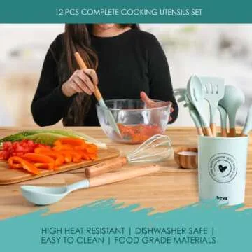 Kitchen Cooking Utensils Set, Silicone Kitchen Utensils Set, Silicone Cooking Utensils set, Lurvz 12 Pc Silicone Spatula Set with Holder