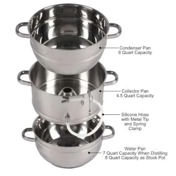 Kitchen Crop Little Creek Stainless Steel Water Distiller, 2 Gallon Capacity, Works on All Stovetops, Double Boiler, Render Lard & Tallow