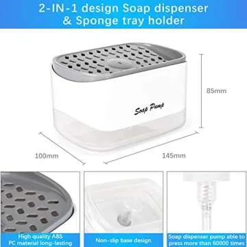 Kitchen Dish Soap Dispenser with Sponge Holder, 2-in-1 Countertop Soap Pump Dispenser, for Kitchen Sink Dishwashing Soap Dispenser - 12.5 Ounces