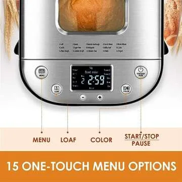 Kitchen in the box Bread Maker Machine with Gluten-Free Setting, 2LB 1.5LB 1LB Automatic Breadmaker with Homemade Cycle, 15-in-1 Stainless Steel Bread Maker with Recipes-Silver