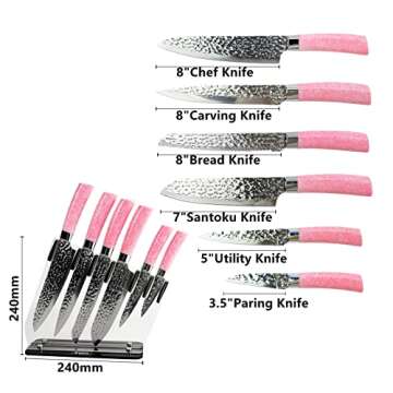 Kitchen Knives Set, High Carbon Stainless Steel Knife Set 7PCS, Super Sharp Cutlery Knife Set with Clear Acrylic Stand, Knife Block Set (Pink)