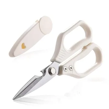 These kitchen scissors feature ergonomic handles that provide an incredibly comfortable grip, allowing for effortless use even during prolonged cooking sessions. The vibrant white color adds a stylish flair, while the included protective sheath not only serves to cover the sharp blades when stored but also ensures safety, making them a fantastic choice for homes with children. With these scissors readily accessible in your kitchen, struggling to find them amid the clutter will be a thing of the past!