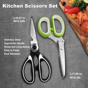 Transform your cooking experience with kitchen scissors that not only enhance the prep process but also provide peace of mind with a secure storage solution. You'll appreciate the comfort and ease of cutting through ingredients, making cooking enjoyable and stress-free. With its quality construction and design, this set will quickly become an indispensable part of your kitchen arsenal, enriching your cooking adventures and home culinary creations.