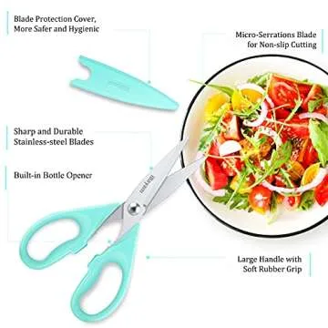 Kitchen Shears, iBayam Kitchen Scissors All Purpose Heavy Duty Meat Scissors Poultry Shears, Dishwasher Safe Food Cooking Scissors Stainless Steel Utility Scissors, 2-Pack, Pastel Pink, Mint Blue