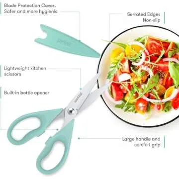 Kitchen Shears, iBayam Kitchen Scissors Heavy Duty Meat Scissors Poultry Shears, Dishwasher Safe Food Cooking Scissors All Purpose Stainless Steel Utility Scissors, 2-Pack (Aqua Sky)
