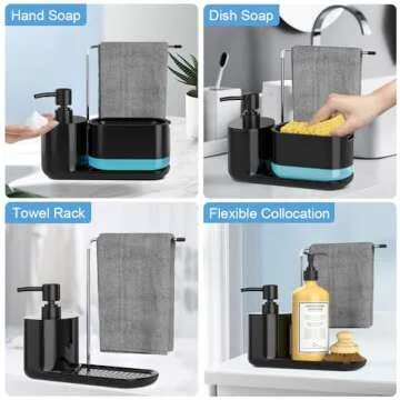 Kitchen Soap Dispenser Set, Soap Dispenser for Kitchen Sink, Dish Soap Dispenser with Sponge Holder, Rag Holder and Tray, 4-in-1 Organizer for Kitchen Sink Countertop, Useful Kitchen Gadgets - Black