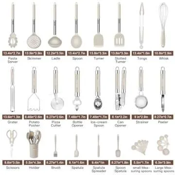 Show more Introducing the Kitchen Utensils Set, a comprehensive collection of 33 essential cooking tools that elevate your culinary experience! Designed with the modern chef in mind, this premium utensil set includes everything you need to prepare delicious meals with ease. Featuring an array of thoughtfully crafted utensils such as a turner, slotted turner, skimmer, ladle, pasta server, tongs, whisk, and much more, you’ll find yourself equipped for any kitchen task. The utensils are made from durable silicone with thick, sturdy 304 stainless steel handles that guarantee longevity and quality in every use.