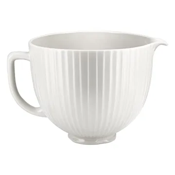 Show moreTransform your culinary adventures with the exquisite KitchenAid 5-quart Ceramic Mixing Bowl, specifically tailored to enhance the functionality and aesthetic of your 4.5 and 5-quart tilt-head KitchenAid Stand Mixers. This beautifully crafted bowl is not just a kitchen tool but a statement piece that embodies both elegance and practicality. Made from high-quality, durable ceramic, it defies chipping, cracking, crazing, and staining, ensuring that you enjoy its pristine appearance for years to come. With this mixing bowl, you can bake with confidence, whether you are an aspiring chef or a seasoned pro.