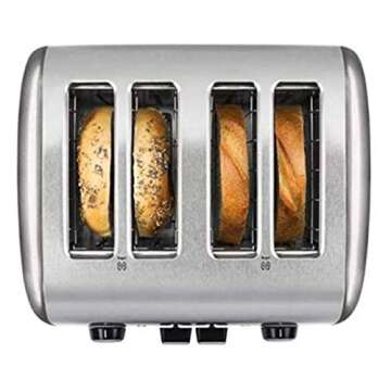 Show moreExperience the art of toasting like never before with the KitchenAid 4-Slice Toaster with Manual High-Lift Lever. Designed for those who cherish perfectly toasted bread, this toaster features four extra-wide slots measuring 1 1/2 inches, allowing you to toast everything from bagels and English muffins to thick artisanal bread. Its sleek all-metal construction not only enhances durability but also adds a touch of elegance to your kitchen countertop. With a powerful toasting mechanism, this toaster ensures even toasting every time, making breakfast a delightful experience.