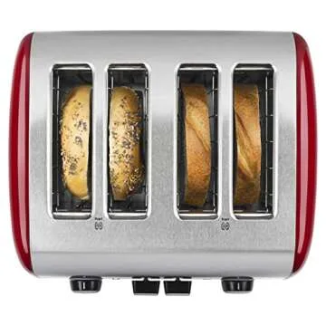 What sets this toaster apart is its dual independent controls, allowing you to toast different types of bread simultaneously and customize less or more toast for each person. The innovative bagel setting optimally heats the sides of the bagel with a heating element that reduces power to ensure perfect browning while preserving the softness inside. The KitchenAid 4-Slice Toaster also features an adjustable shade control with five settings (from light to dark) to tailor your toast to your precise preference. And for accessibility, the high lift lever makes retrieving smaller pieces of bread effortless and safe!