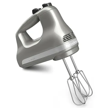 Show moreDiscover the perfect blend of functionality and style with the KitchenAid 5-Speed Ultra Power Hand Mixer. Renowned as the #1 mixer brand in the world,* this powerful kitchen companion effortlessly tackles all your mixing needs. Whether you're mixing in nuts and chocolate chips or whipping up perfect meringues, this mixer has a speed setting for every task—from a gentle stir at speed one to vigorous whipping at speed five. Designed with an intuitive lockable swivel cord, you won't have to worry about tangling while you create your culinary masterpieces.