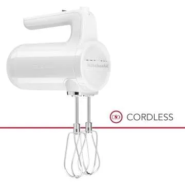 ... Show moreThis innovative cordless hand mixer by KitchenAid allows bakers to whip up delicious creations without the hassle of being tethered to an outlet. With a rechargeable Lithium Ion battery that can make up to 200 cookies on a full charge, it's perfect for home cooks who want both versatility and freedom in the kitchen. Boasting 7 speeds, it expertly handles everything from slow stirring for chunky ingredients to high-speed whipping of egg whites and heavy creams.