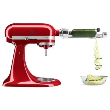 Show moreTransform your culinary experience with the KitchenAid Fruit and Vegetable Spiralizer Attachment, designed for use with any KitchenAid Stand Mixer. This innovative accessory allows you to unleash your creativity by effortlessly spiralizing, slicing, and peeling a variety of fruits and vegetables, turning everyday ingredients into gourmet presentations. Made with a premium polished aluminum construction, this attachment not only enhances the versatility of your mixer but also ensures durability and a sleek aesthetic. Enjoy the power of your KitchenAid motor as it effortlessly drives the spiralizer, providing a seamless solution for healthy cooking.