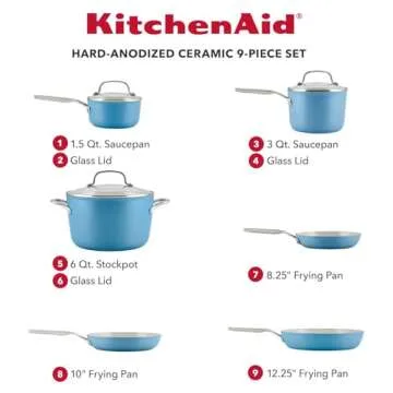 KitchenAid Hard Anodized Ceramic 9-Piece Nonstick Cookware Set – Fry Pans, Saucepan, Stockpot, Oven Safe, Blue Velvet
