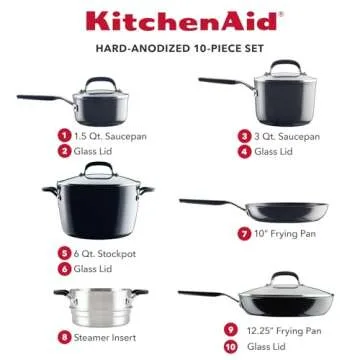 Premium KitchenAid Hard Anodized Nonstick Cookware Set – 10 Pieces, Stylish Matte Black