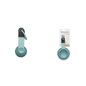 KitchenAid KE058OHAQA Classic Measuring Cups, Set of 4, Aqua Sky/Black and Classic Measuring Spoons, Set of 5