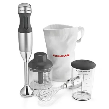 Show moreIntroducing the KitchenAid KHB2351CU 3-Speed Hand Blender in Contour Silver—an elegant and versatile kitchen companion that's designed to elevate your culinary creations. This immersion blender combines powerful functionality with ease of use. Featuring a removable 8-inch blending arm equipped with a stainless steel S-shaped fixed blade, it effortlessly blends a variety of ingredients including smoothies, soups, and baby food. Enjoy the joy of cooking without the hassle as this sleek blender is built to withstand daily use, enhanced by its durable construction that ensures longevity.